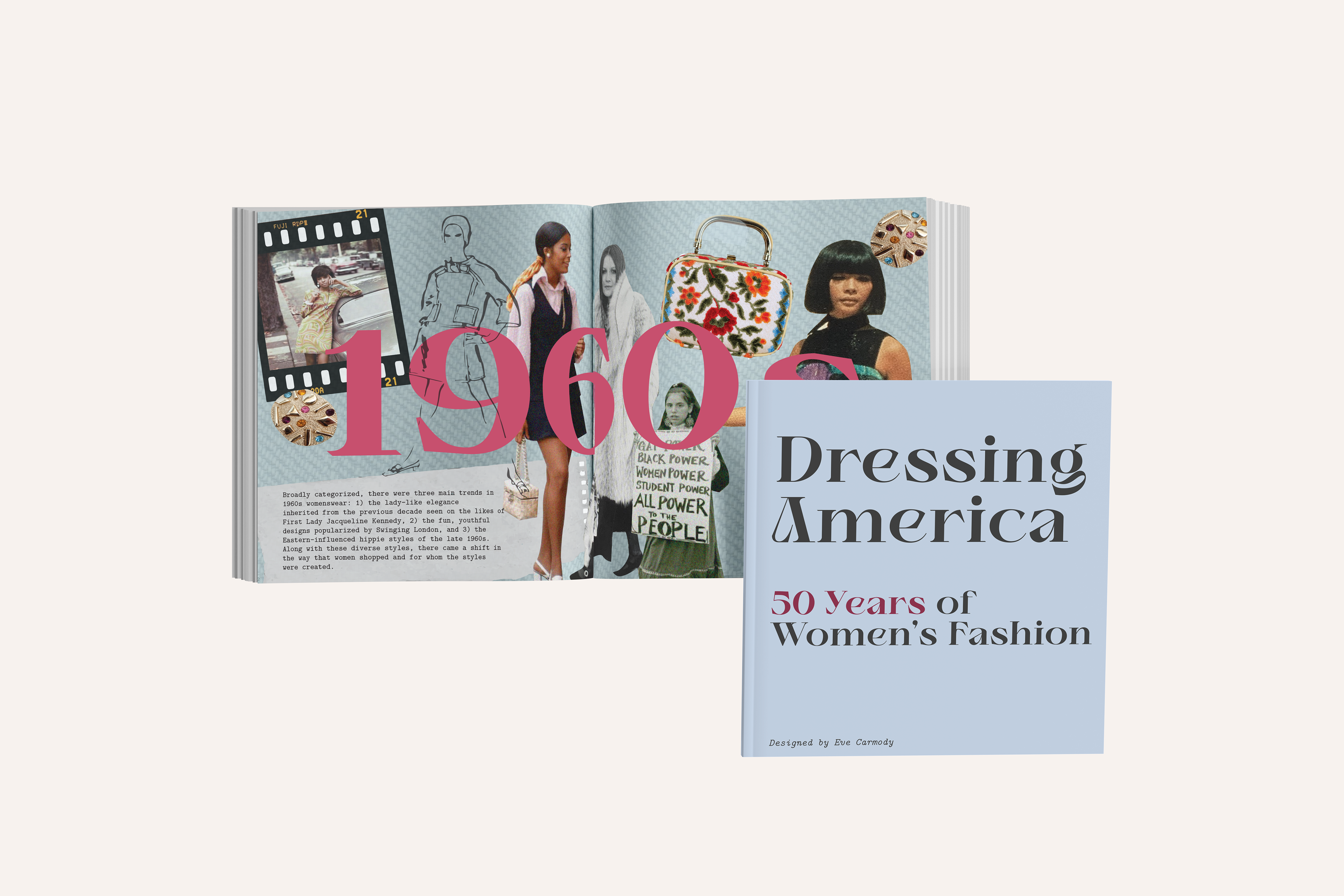 Dressing America: 50 Years of Women’s Fashion, covers the common styles, fashion, and icons from the 1960s to the 2000s through a lens of inclusivity. The way we dress is a form of visual language. Fashion has always been a universal outlet for individuals to express themselves. Recently, fashion has experienced a revival of past trends, specifically from these five decades. Historically, the fashion world focuses on the dress of white women. This book attempts to acknowledge the history of women of color and their influence on the fashion industry. The goal of this book is to educate people on the fashion history of all women in America, but to also emphasize how our fashion today is greatly inspired by the past. We dress ourselves every day without knowing the history of the styles we wear or love.